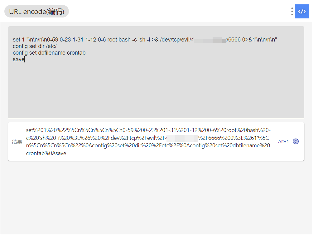 接下来就是发送三条 redis 命令,将反弹 shell 的脚本写入目录/etc/crontab(这个目录下是一个默认自动执行的一些 crontab 定时服务命令,里面都写的是一些开启服务的命令):