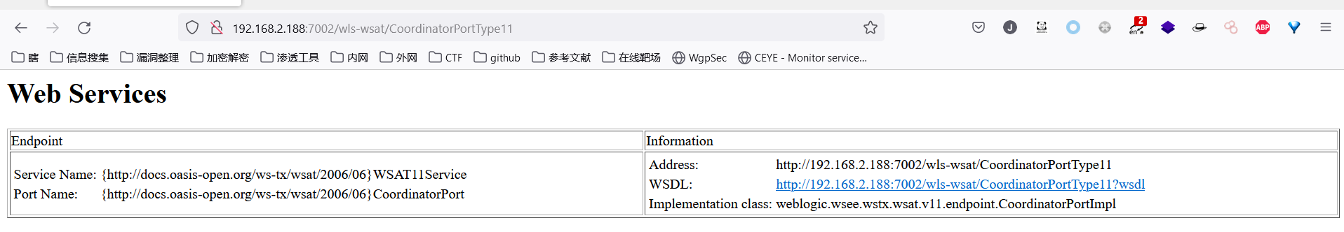 http://192.168.2.188:7002/wls-wsat/CoordinatorPortType11,如果存在下图则说明或许存在漏洞