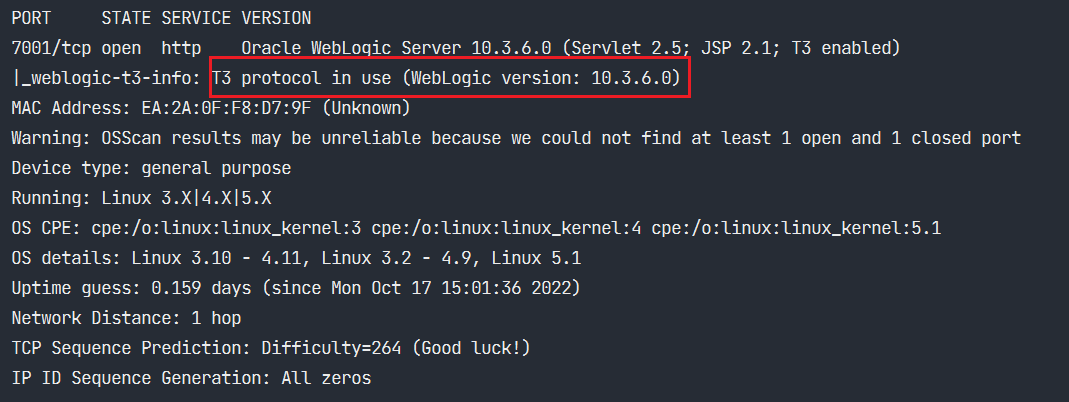 nmap -p 7001 -T4 -A -v --script weblogic-t3-info 192.168.2.188