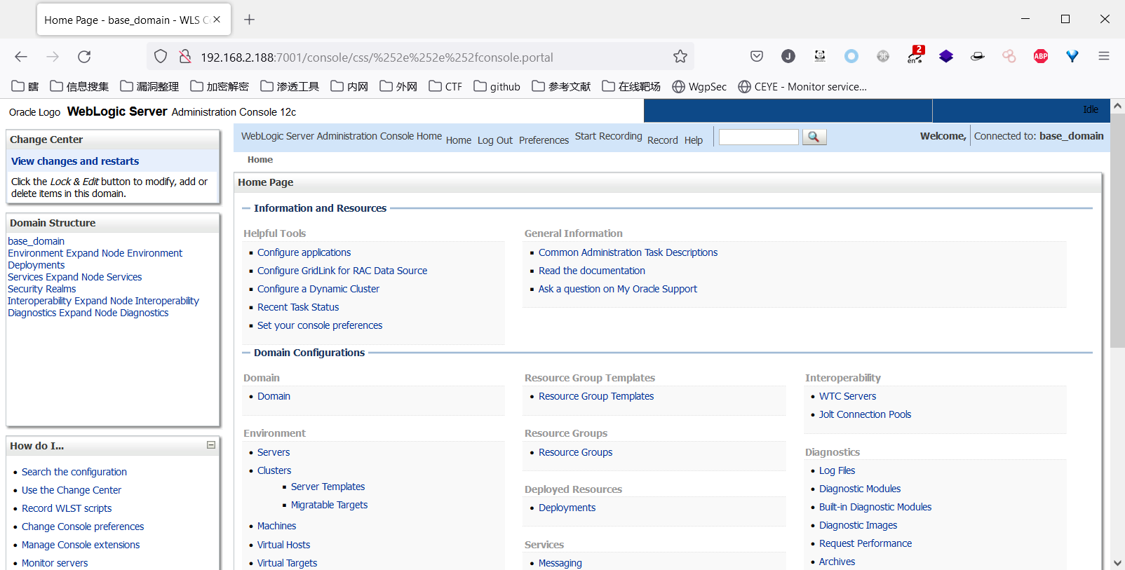- 本环境模拟了一个真实的weblogic环境,其后台存在一个弱口令,并且前台存在任意文件读取漏洞.分别通过这两种漏洞,模拟对weblogic场景的渗透.