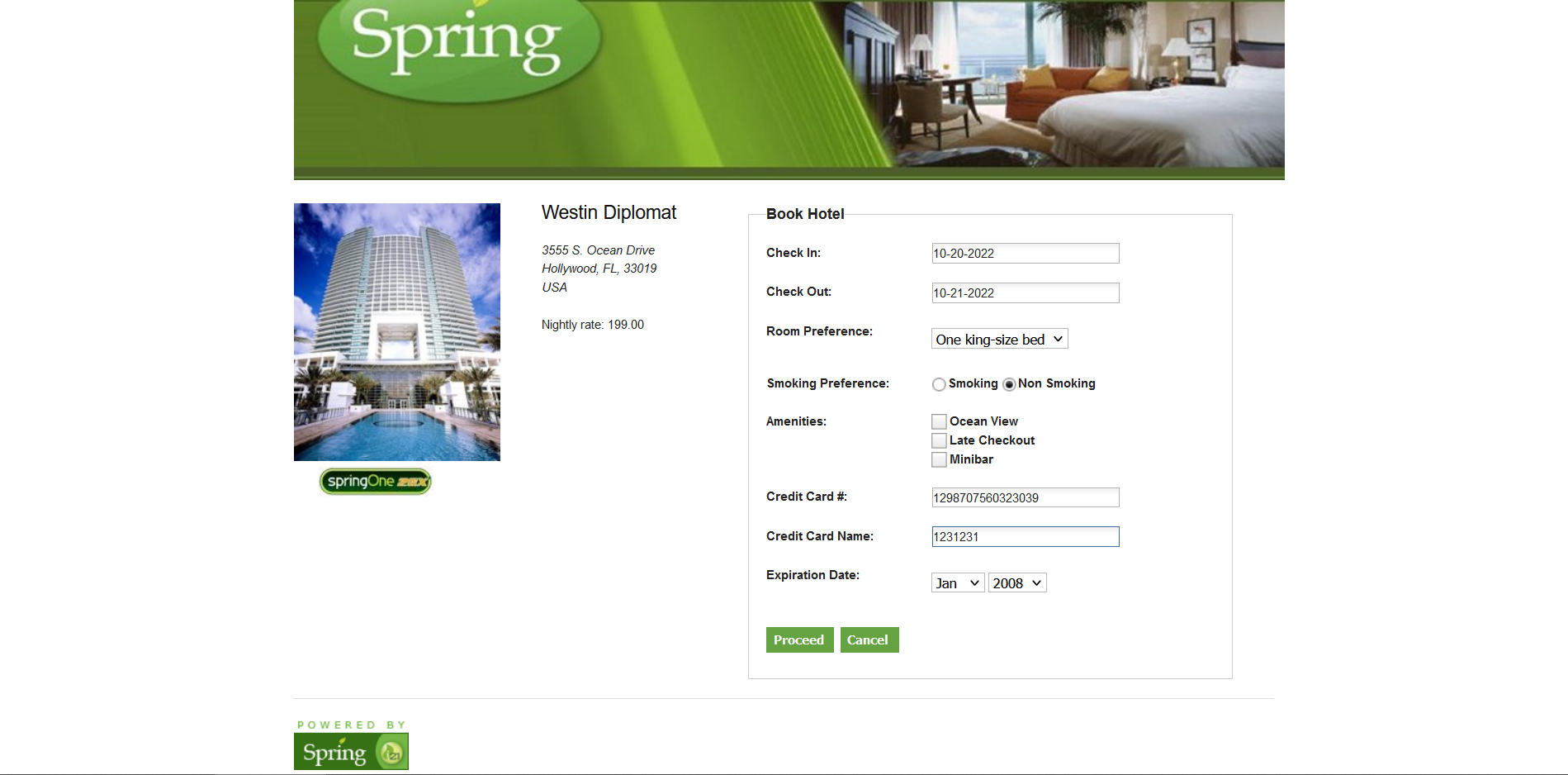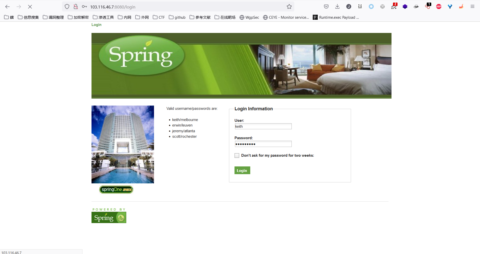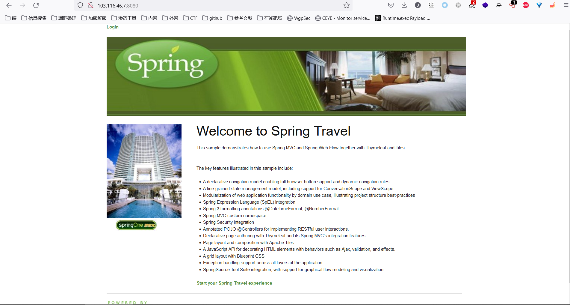 - 访问 - http://your-ip:8080将看到一个酒店预订的访问页面,这是spring-webflow官方给的简单示例