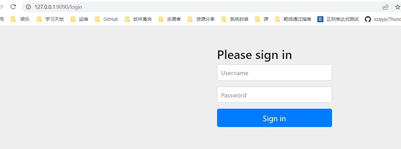 - 服务器启动后,浏览到http://127.0.0.1:9090/admin 可以看到会重定向到login页面