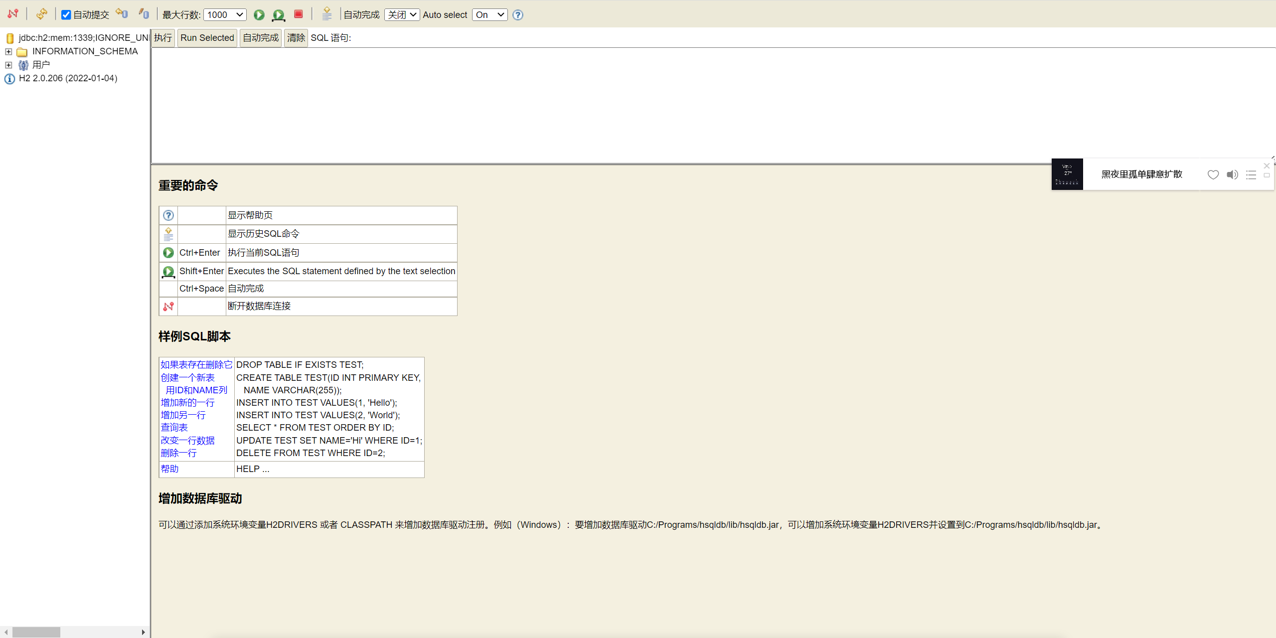 H2 database是一款Java内存数据库,多用于单元测试.H2 database自带一个Web管理页面,在Spirng开发中,如果我们设置如下选项,即可允许外部用户访问Web管理页面,且没有鉴权(spring boot 配置中开启:)