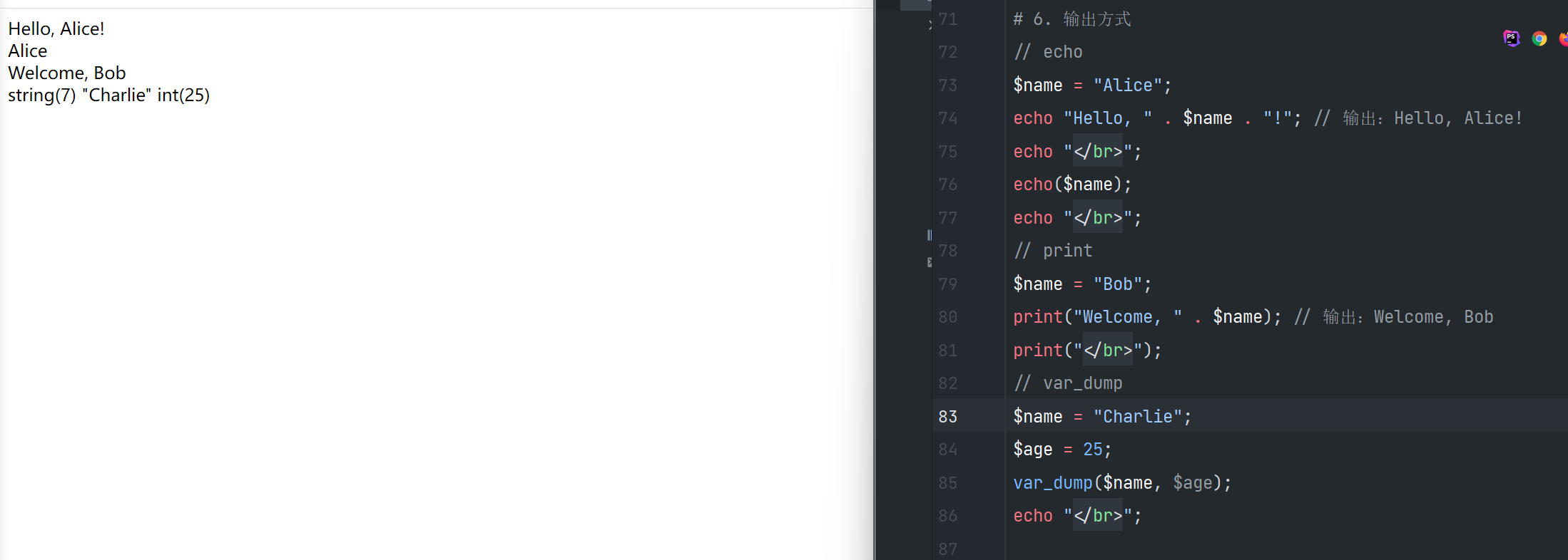 echo expression;echo是一个语言结构而不是函数,因此可以省略括号.它可以输出一个或多个字符串.echo没有返回值,只用于输出内容到浏览器或命令行.echo输出的内容可以包含任何有效的表达式,包括字符串、变量和表达式的组合.echo和echo()是一样的示例: