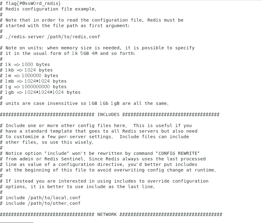 [root@localhost defend]# more /etc/redis.conf flag{P@ssW0rd_redis}