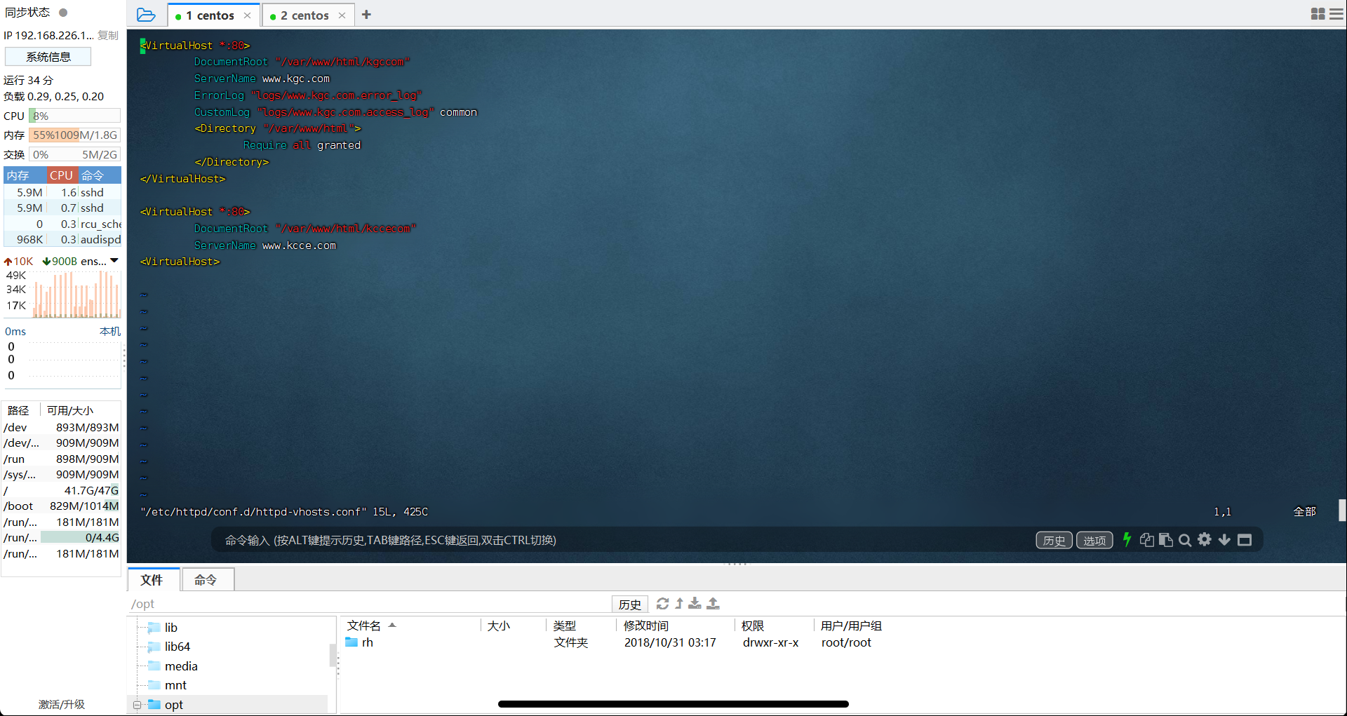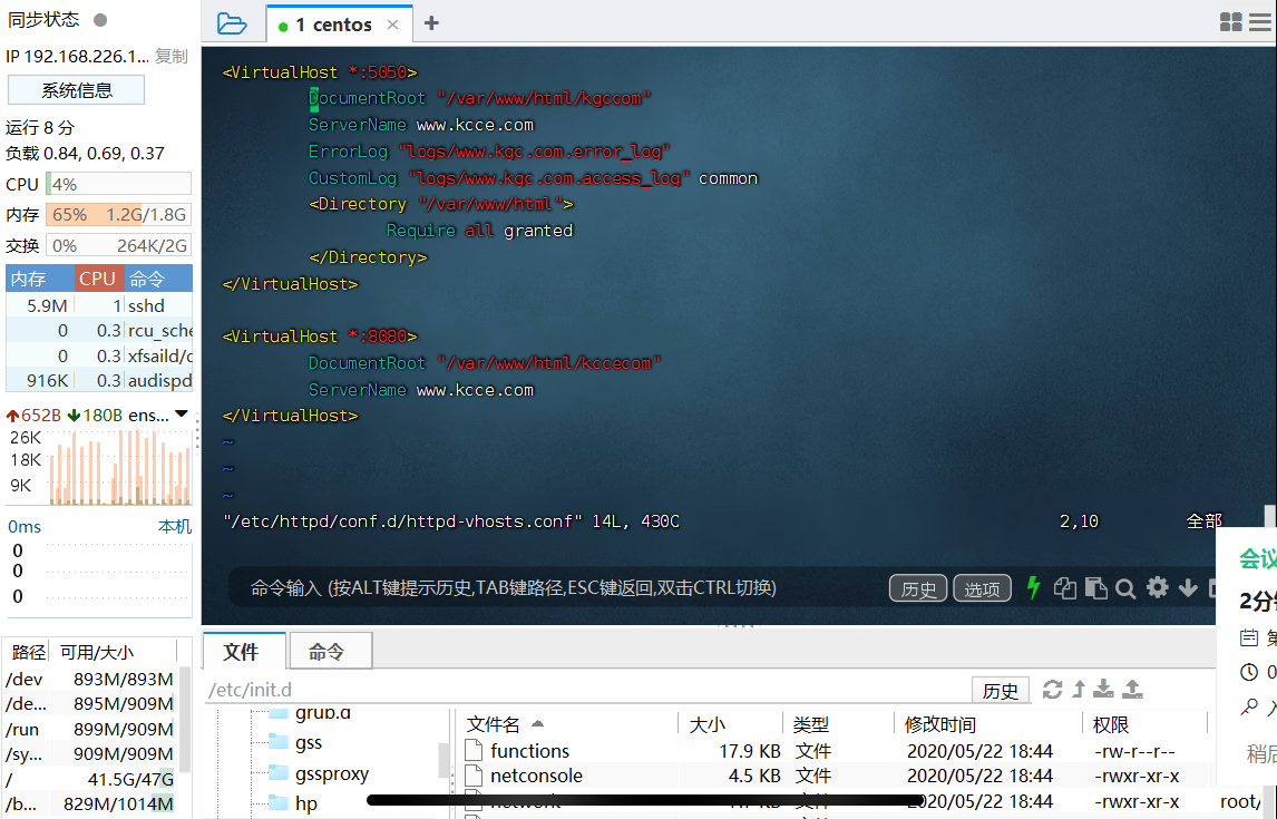 为虚拟主机提供域名解析 1 2 3 vim /etc/hosts 127.0.0.1 www.kgc.com www.kcce.com