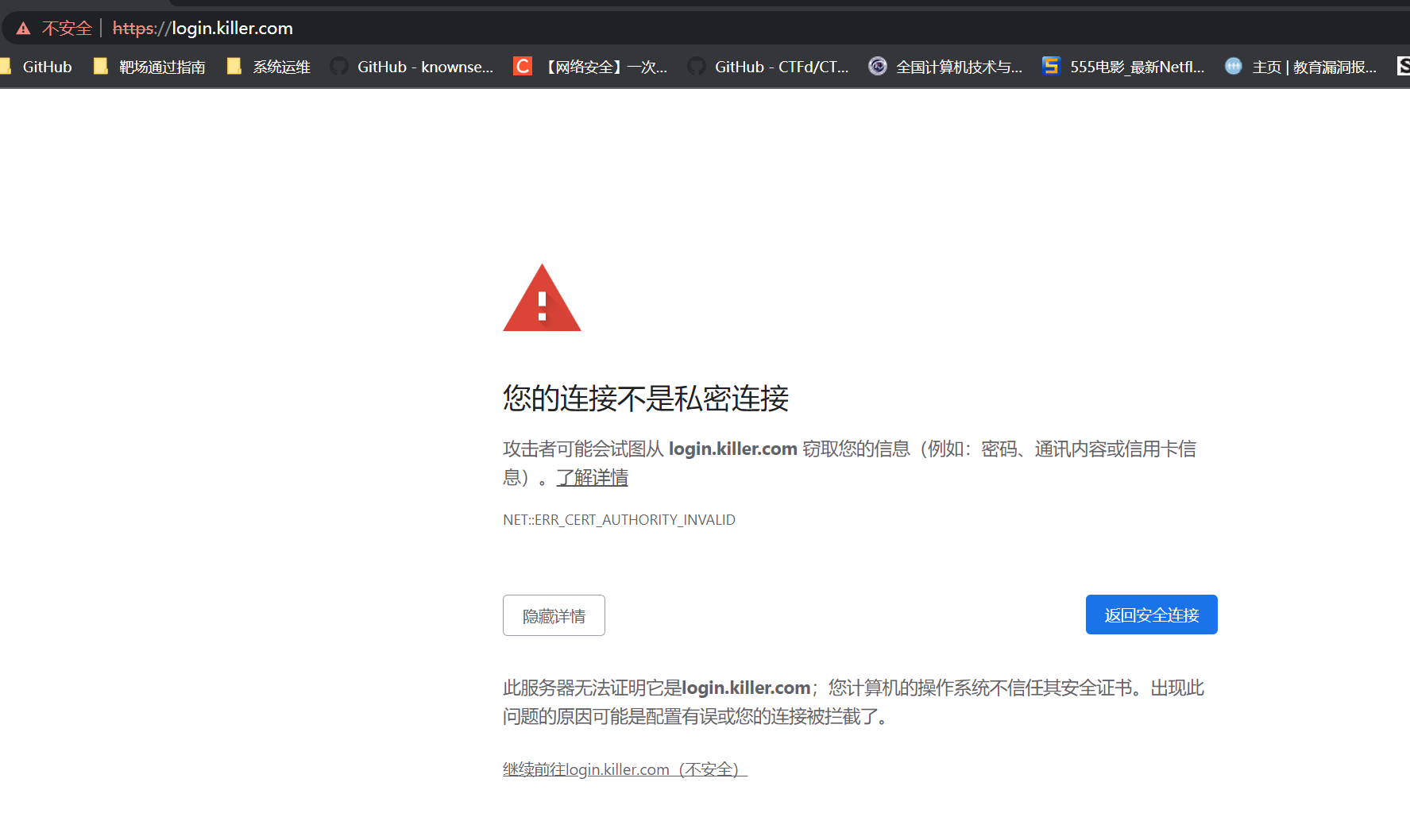 网址重写 1 2 3 4 5 6 7 8 9 10 11 12 13 14 15 16 17 18 19 20 21 22 23 24 25 26 27 28 29 30 31 32 33 cd /etc/httpd/conf.dvim killer.conf <VirtualHost *:80> ServerName login.killer.com RewriteEngine on RewriteRule ^(/.*)$ https://%{HTTP_HOST}$1 [redirect=301] </VirtualHost> <VirtualHost *:443> ServerName login.killer.com DocumentRoot /www/html CustomLog logs/login.log combined SSLEngine on SSLCertificateFile /etc/pki/tls/certs/localhost.crt SSLCertificateKeyFile /etc/pki/tls/private/localhost.key </VirtualHost> <Directory "/www/html" > Require all granted </Directory> systemctl restart httpd