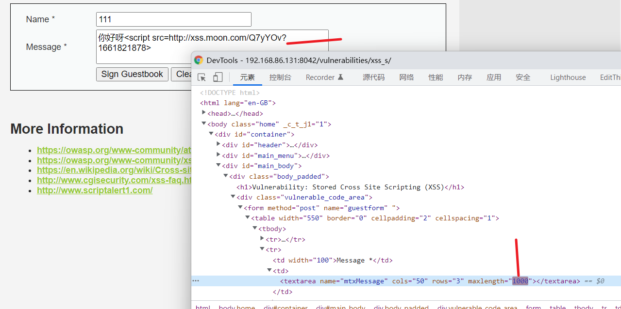 通过测试后发现2种方式都被过滤,然后尝试name输入框,将长度限制改掉然后输入payload