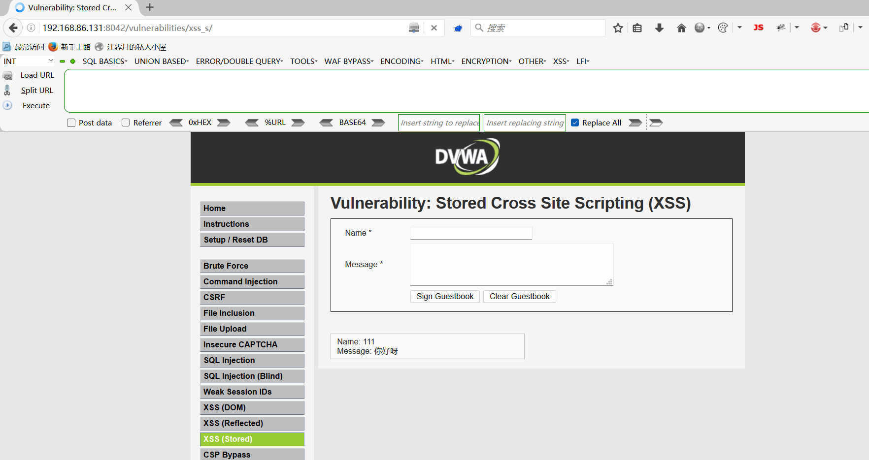 之后我们进入XSS(Stored)中.在进行测试前我们可以先对提交点进行审查元素. 对着目标右键选择审查元素