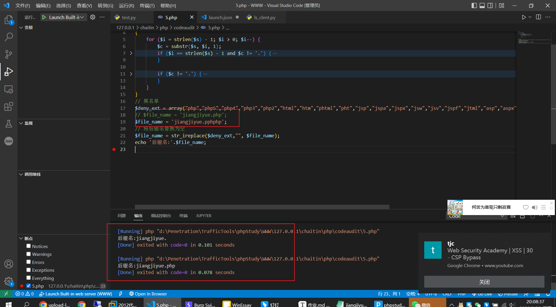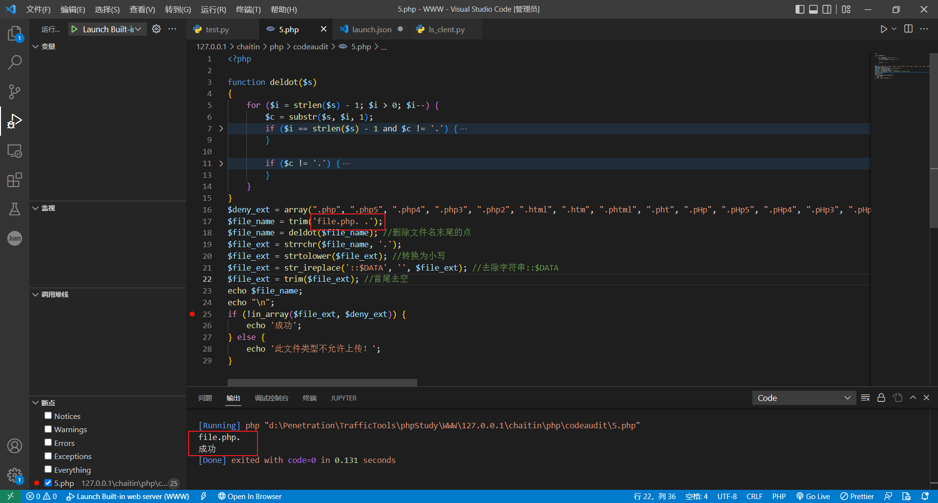 第三关黑名单绕过 代码分析 1 2 3 4 5 6 7 8 9 10 11 12 13 14 15 16 17 18 19 20 21 22 23 24 25 26 27 28 29 30 31 $is_upload = false ;$msg = null ;if (isset ($_POST ['submit' ])) { if (file_exists (UPLOAD_PATH)) { $deny_ext = array ('.asp' ,'.aspx' ,'.php' ,'.jsp' ); $file_name = trim ($_FILES ['upload_file' ]['name' ]); $file_name = deldot ($file_name ); $file_ext = strrchr ($file_name , '.' ); $file_ext = strtolower ($file_ext ); $file_ext = str_ireplace ('::$DATA' , '' , $file_ext ); $file_ext = trim ($file_ext ); if (!in_array ($file_ext , $deny_ext )) { $temp_file = $_FILES ['upload_file' ]['tmp_name' ]; $img_path = UPLOAD_PATH.'/' .date ("YmdHis" ).rand (1000 ,9999 ).$file_ext ; if (move_uploaded_file ($temp_file ,$img_path )) { $is_upload = true ; } else { $msg = '上传出错!' ; } } else { $msg = '不允许上传.asp,.aspx,.php,.jsp后缀文件!' ; } } else { $msg = UPLOAD_PATH . '文件夹不存在,请手工创建!' ; } }