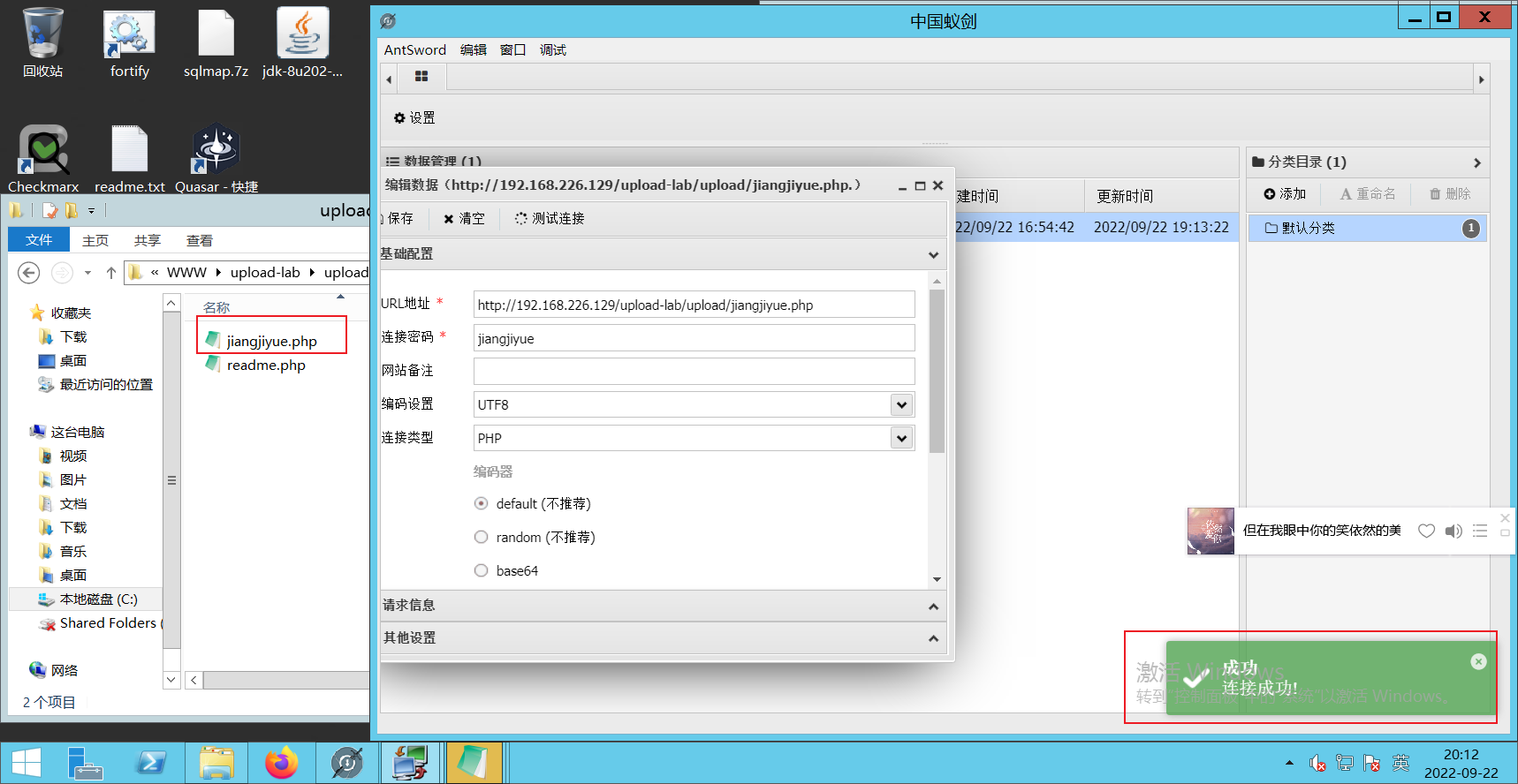 再访问上传目录下的readme.php,即可将jiangjiyue.txt内的内容脚本正常执行.