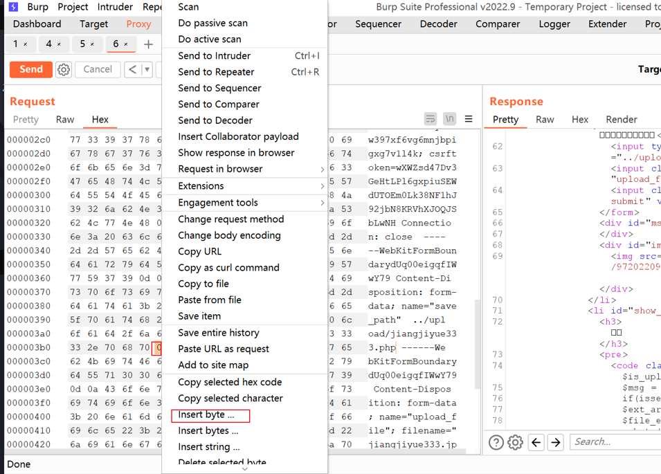 绕过文件内容检查: 服务器通常会对上传的文件进行内容检查,以防止上传恶意代码,攻击者可以尝试绕过这个检查.例如,在文件中插入一些无害的代码或注释,以使文件看起来更合法.