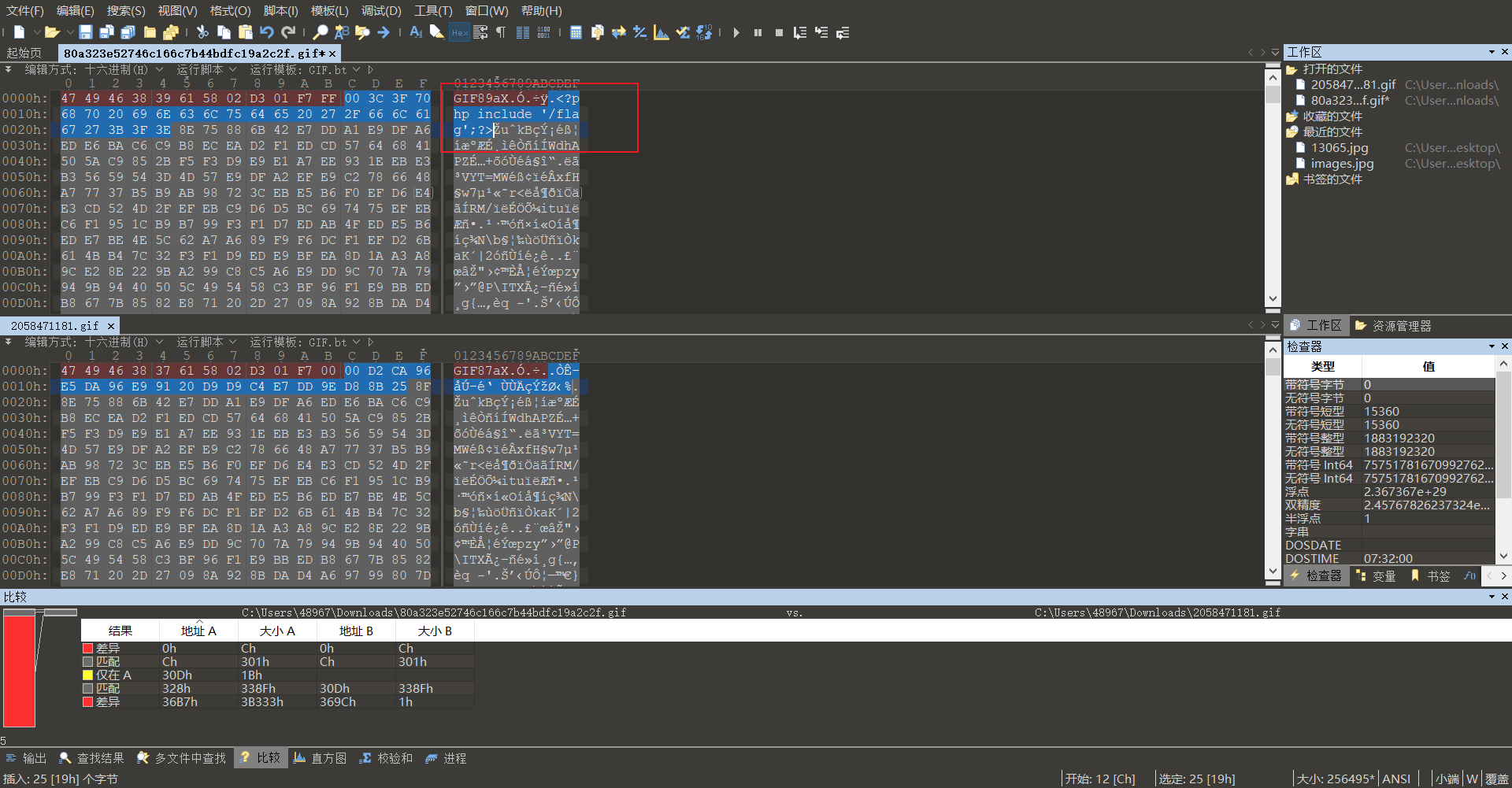 先上传一个正常的gif文件,然后在下载下来用010对比上传前后的gif动图